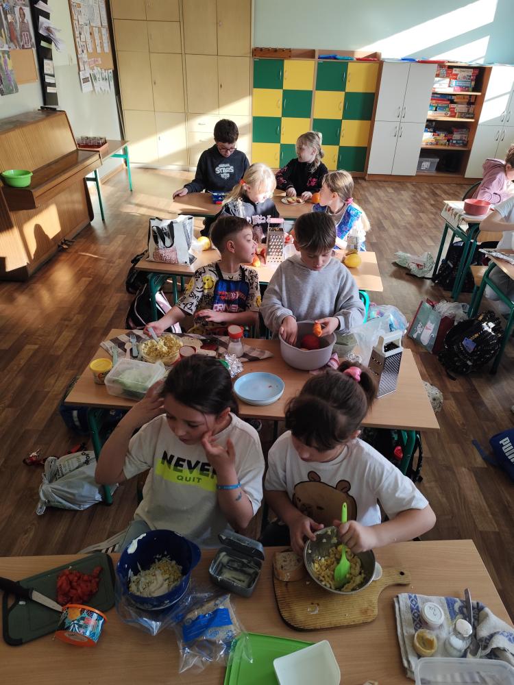 Ponieważ wiosna jest już tuż-tuż, nie mogło zabraknąć części praktycznej. Uczniowie przygotowali kolorowe, zdrowe i pyszne wiosenne kanapki. Było nie tylko smacznie, ale również bardzo kreatywnie!