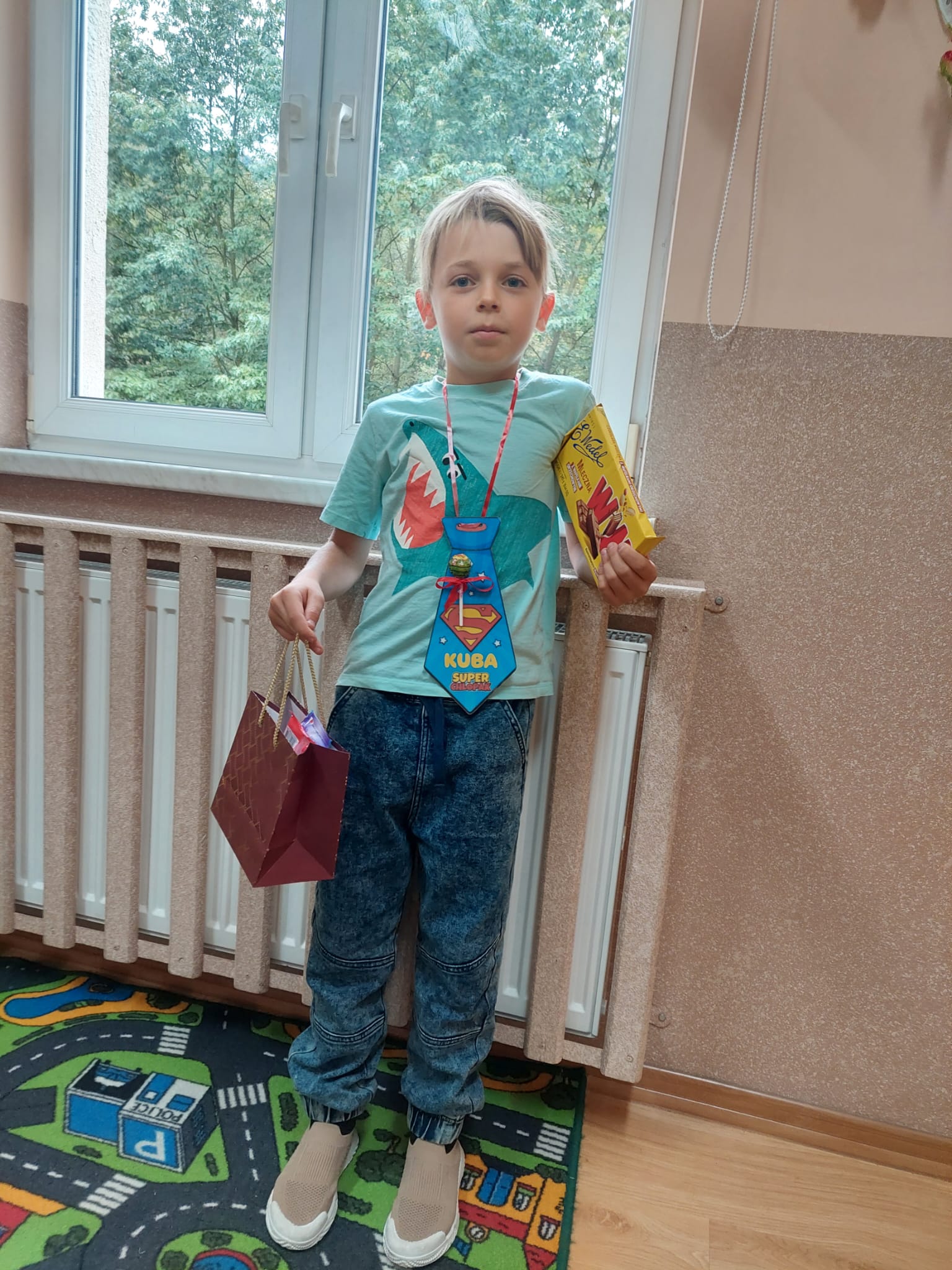 Nasi chłopcy – ci mali i ci więksi – zostali obdarowani przez swoje koleżanki i panie miłymi prezentami oraz ciepłymi życzeniami. 🎁😊