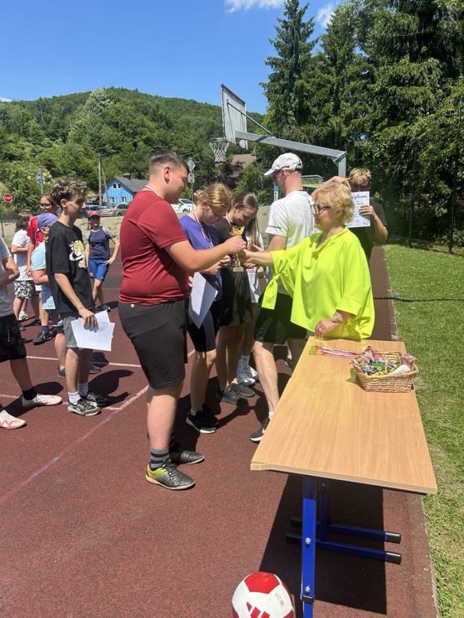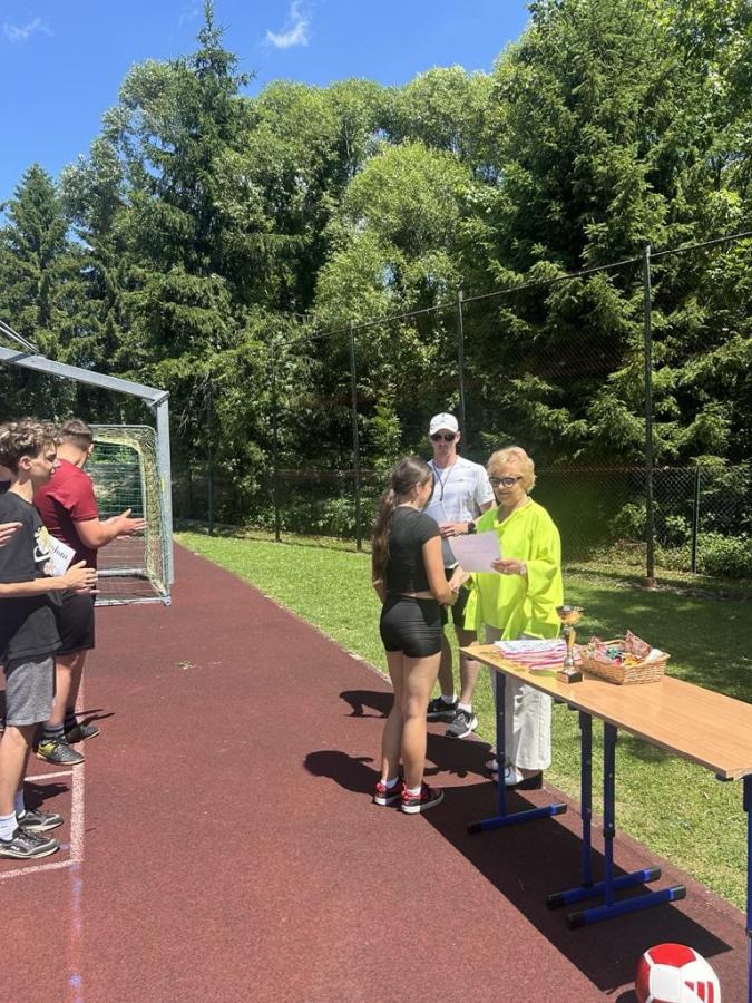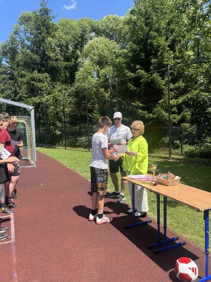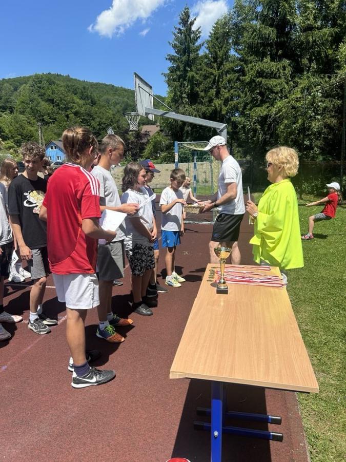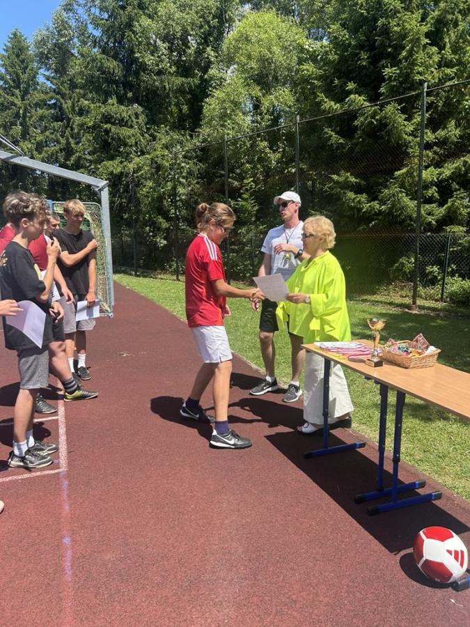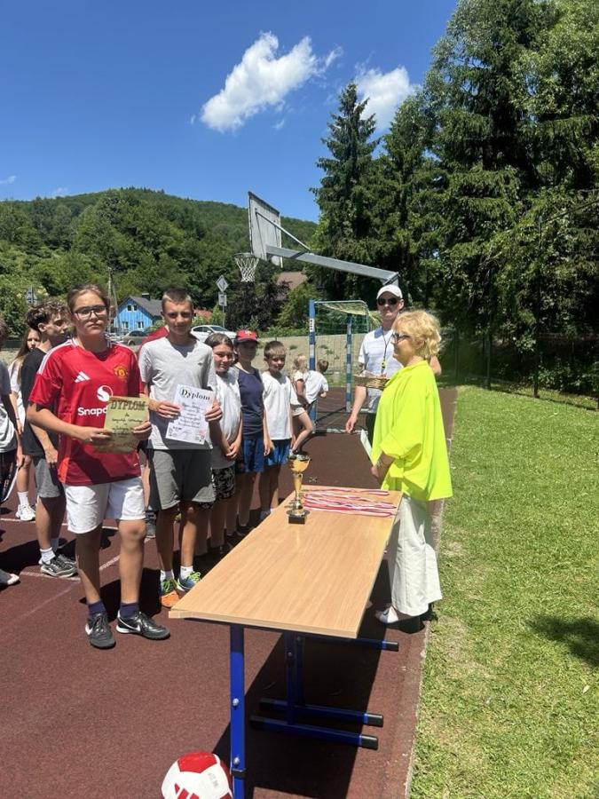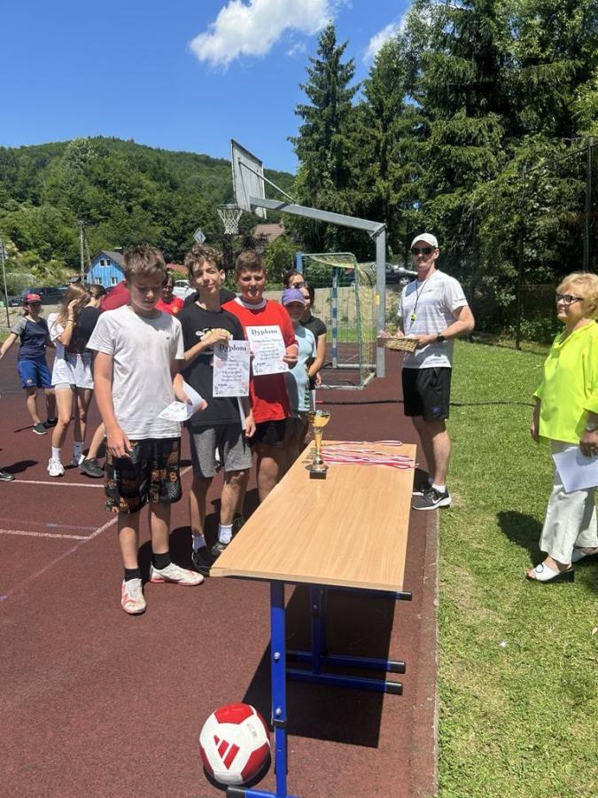 W czwartek w naszej szkole odbył się Dzień Sportu, którego głównym wydarzeniem był Turniej o Puchar Dyrektora Szkoły w piłkę nożną. W turnieju wzięły udział trzy drużyny składające się z uczniów klas 4 – 8. Dodatkowymi atrakcjami były konkurencje takie jak przeciąganie liny, strzelanie z łuku, rozgrywki młodszych klas w piłkę nożną i siatkówkę.