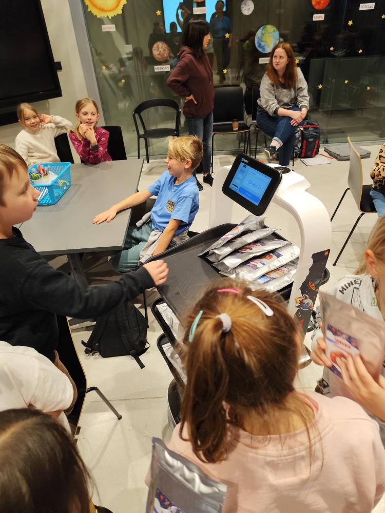 Największą frajdę sprawiło spotkanie z robotem Robertem, który dostarczył uczniom „kosmiczne jedzenie”, oraz sprawdzenie swojej sprawności. Na zakończenie każdy uczestnik otrzymał plecak pełen niespodzianek. To była naprawdę niesamowita przygoda! 🌟