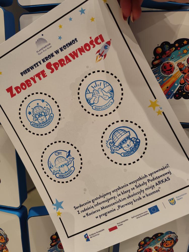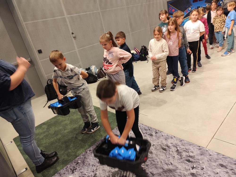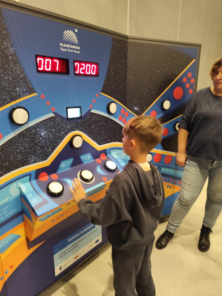 Dziś klasy 2 i 3 udały się na wyjątkową wycieczkę – zakończenie projektu „Pierwszy krok w kosmos” w planetarium w Chorzowie. Uczniowie wyruszyli w prawdziwą kosmiczną podróż, podczas której dzielnie zdobywali odznaki: astronawigatora, konstruktora, sprawności oraz współpracy.