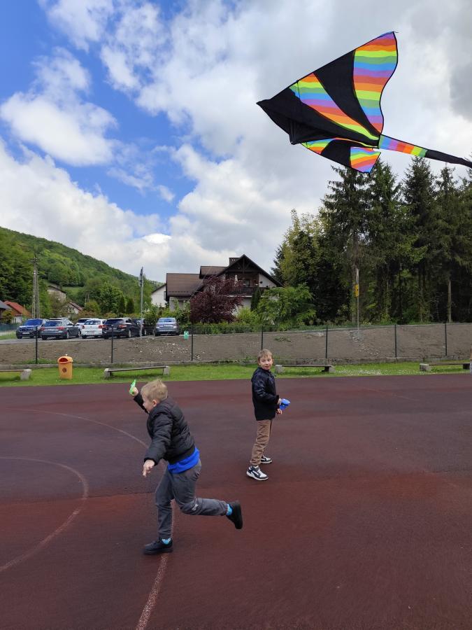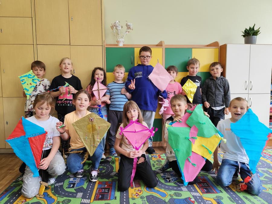 Poznawaliśmy świat walca – nie tylko tańca, ale także maszyny. Dowiedzieliśmy się, co fruwa, a co lata, a inspiracją do rozmów i eksperymentów stały się nasze własnoręcznie wykonane piękne latawce, które dumnie szybowały po niebie.