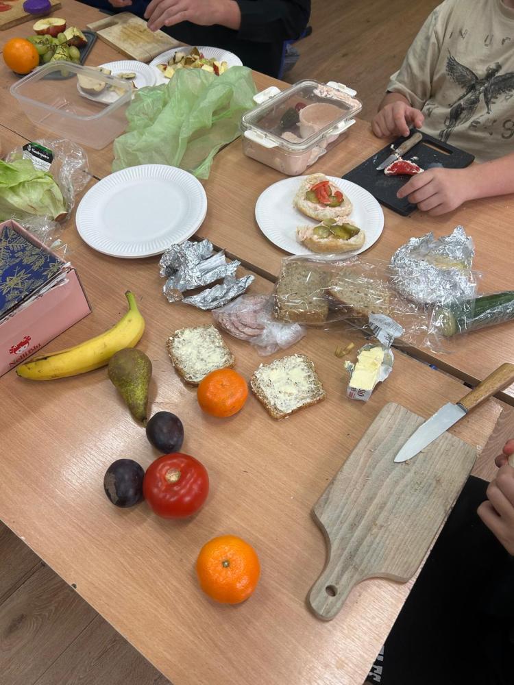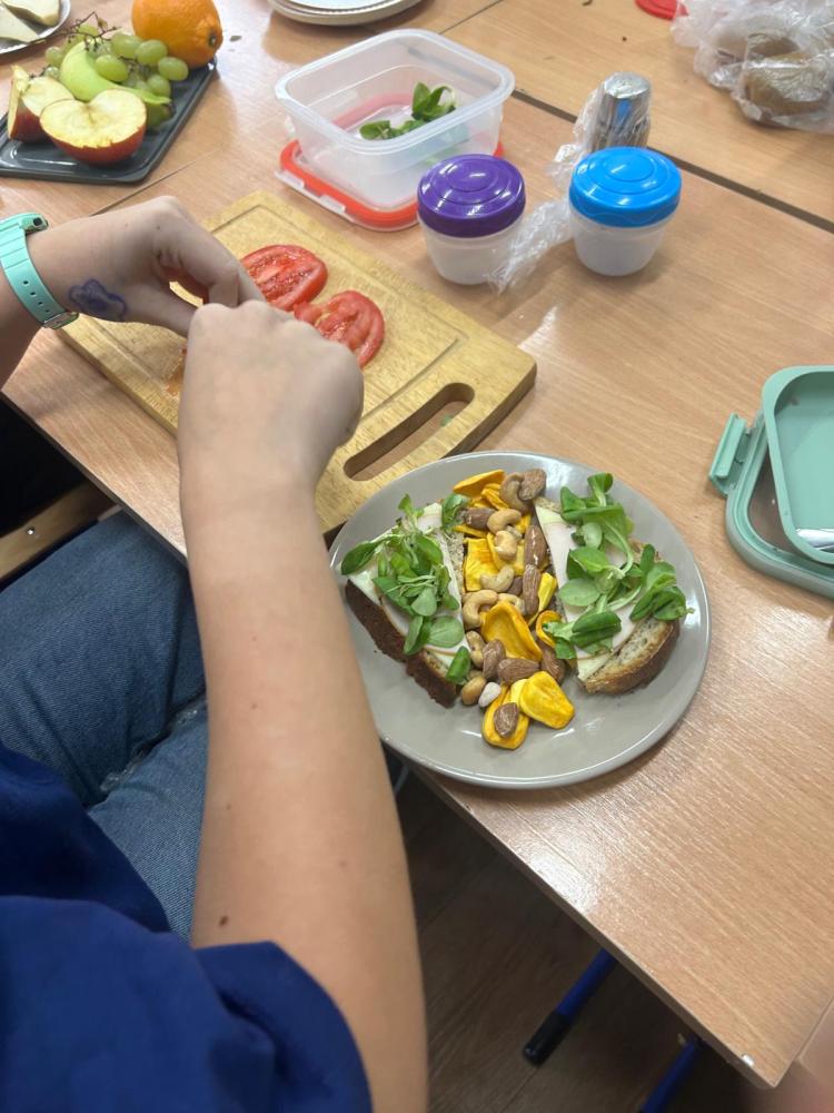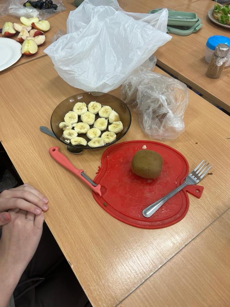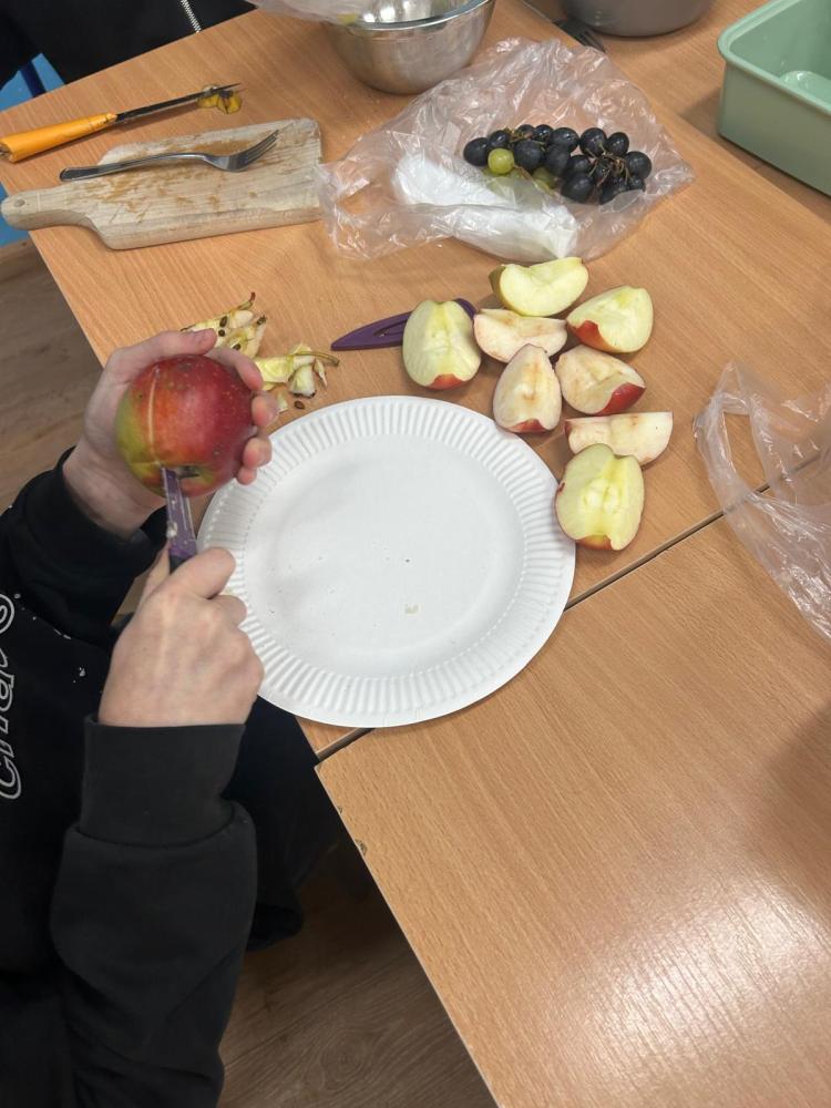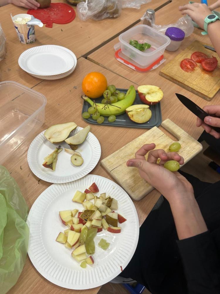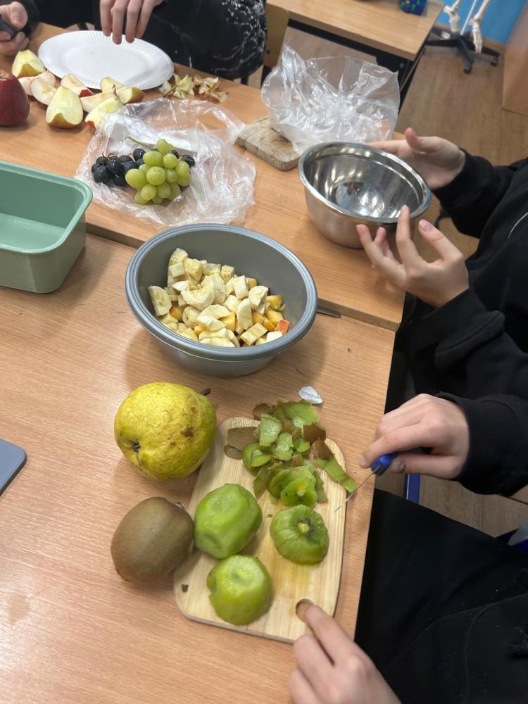 Klasa 7 na lekcji wychowawczej w ramach pogadanki o zdrowym stylu życia wykonała zdrowe przekąski .