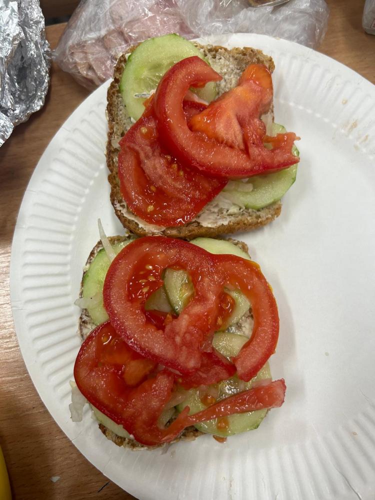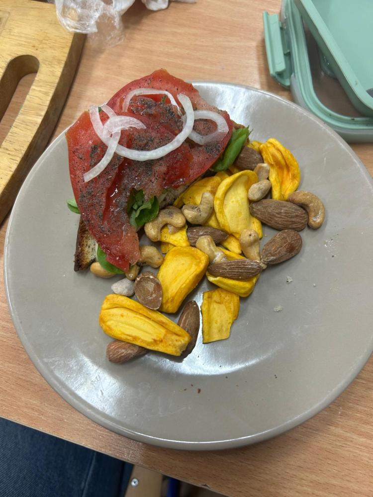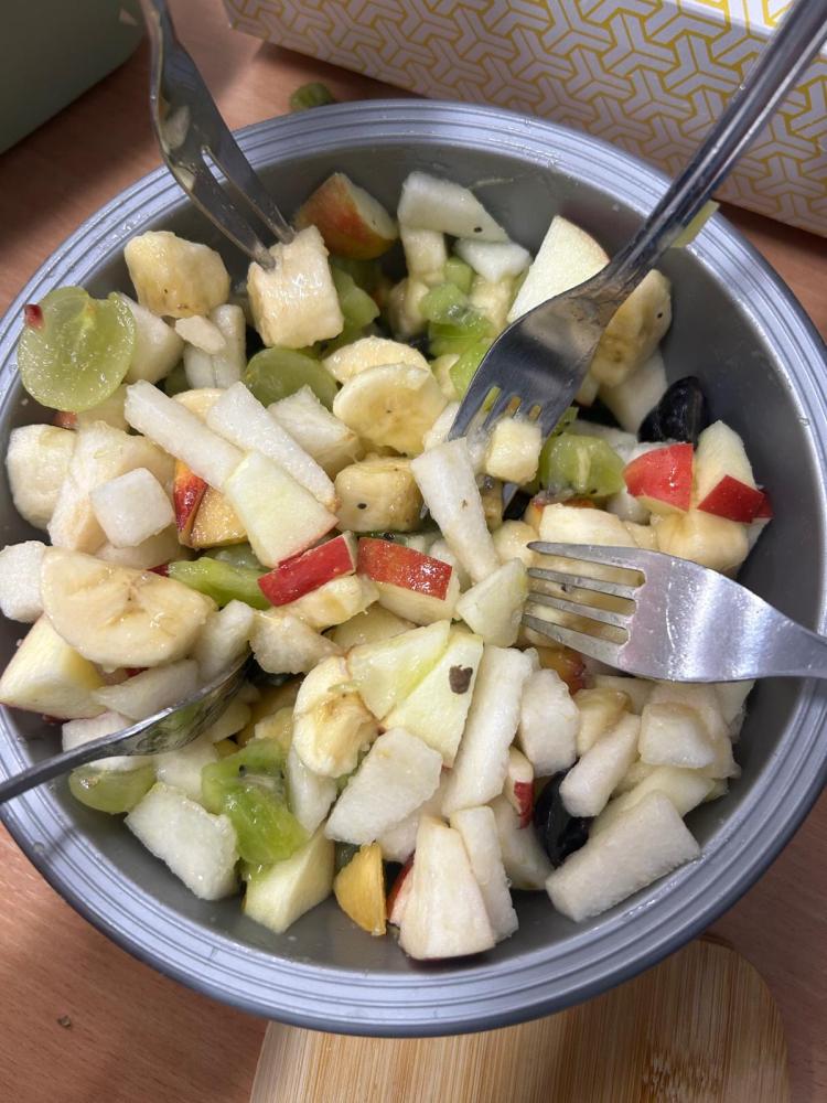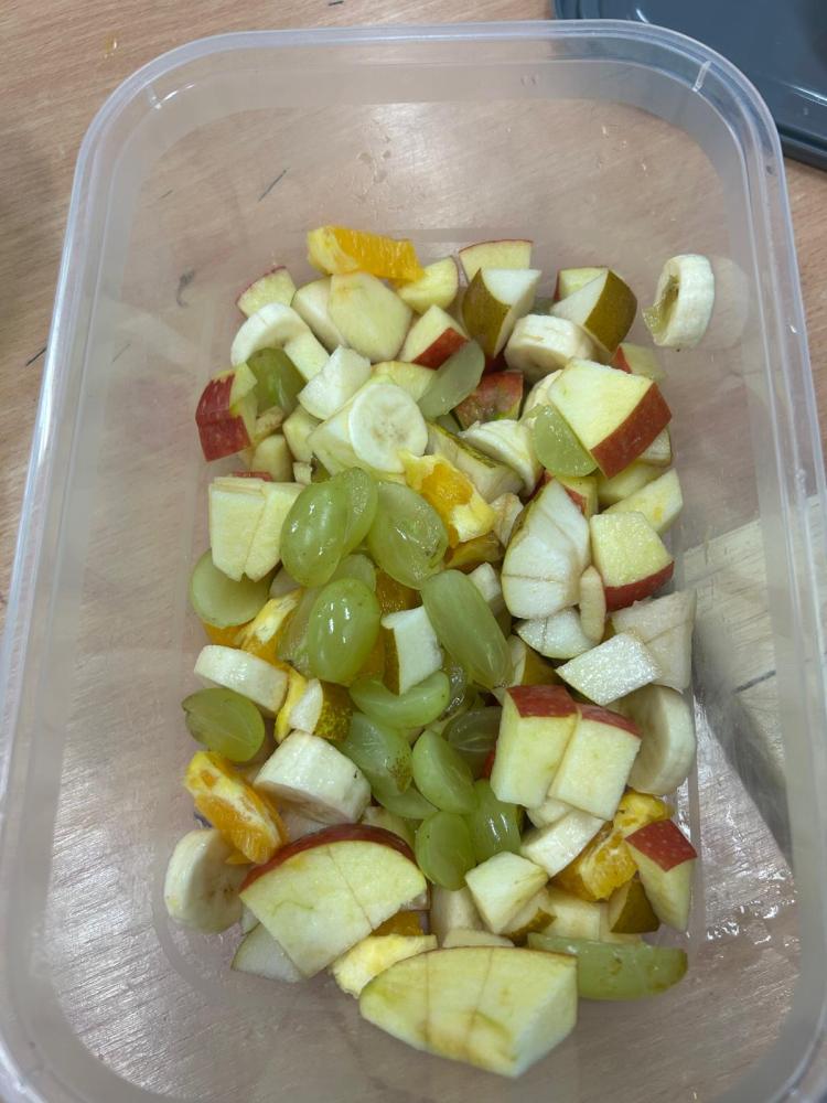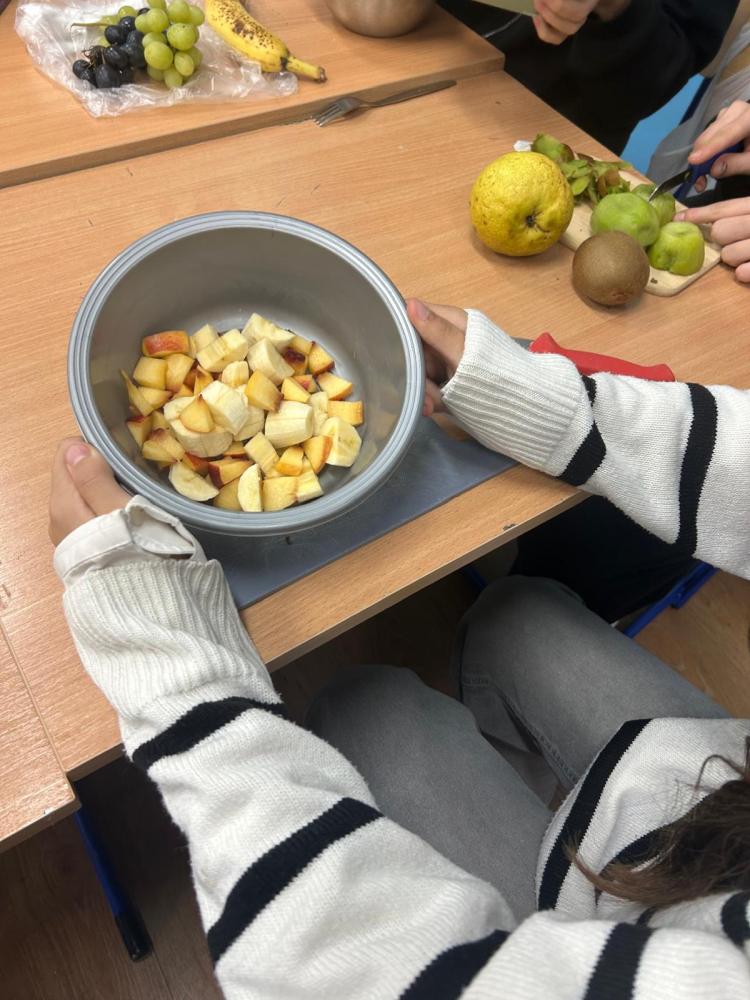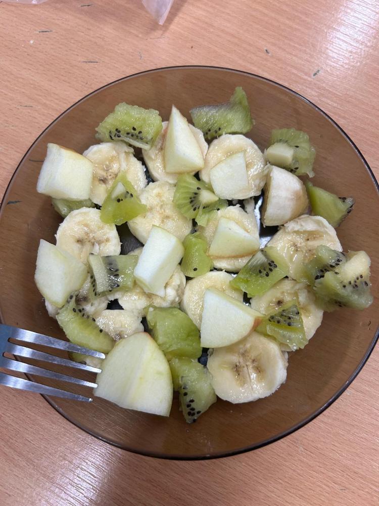 Klasa 7 na lekcji wychowawczej w ramach pogadanki o zdrowym stylu życia wykonała zdrowe przekąski .