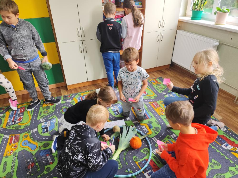 We wrześniu wkroczyliśmy w temat mijającego lata i jesiennych klimatów. Malowaliśmy martwą naturę, poznawaliśmy bliżej warzywa, owoce i ptaki, a także dowiedzieliśmy się, czym różni się krzew od drzewa.