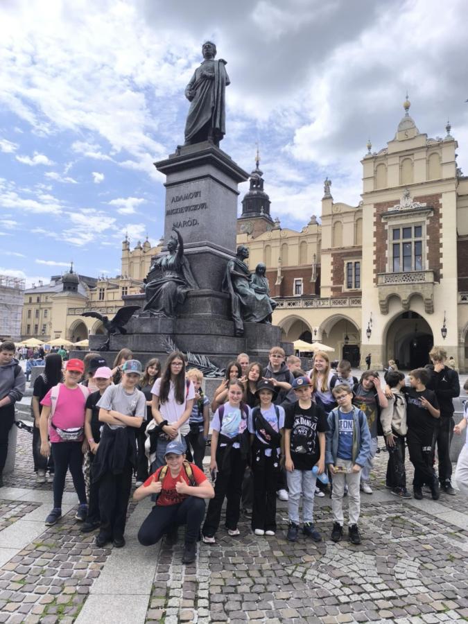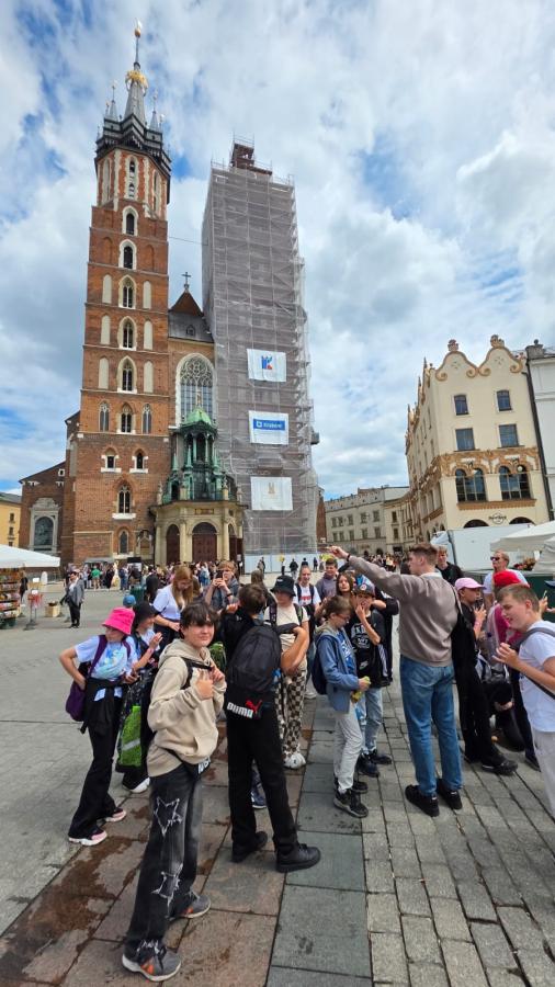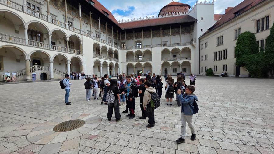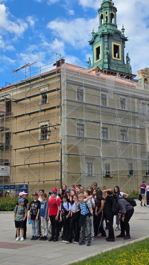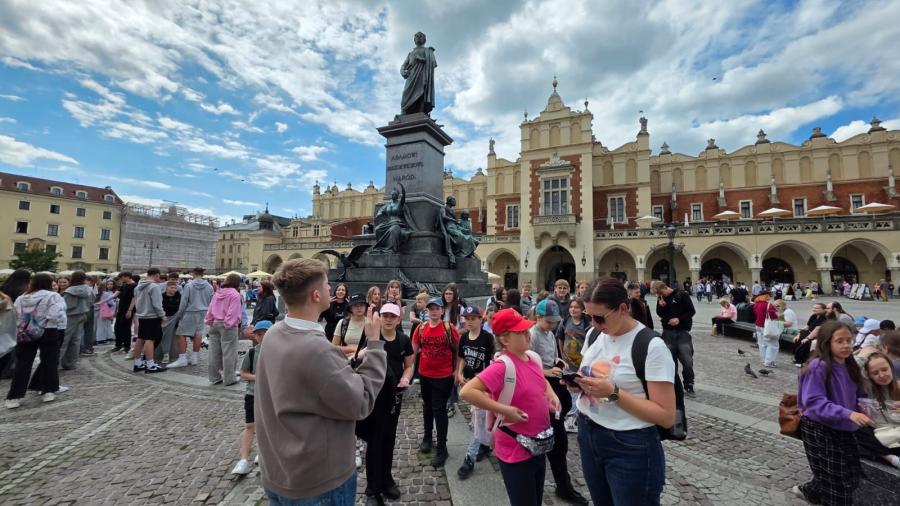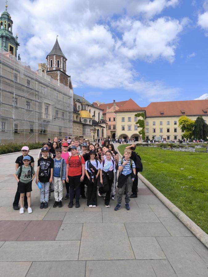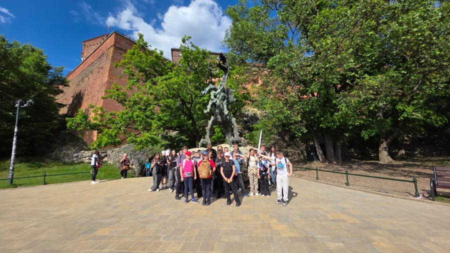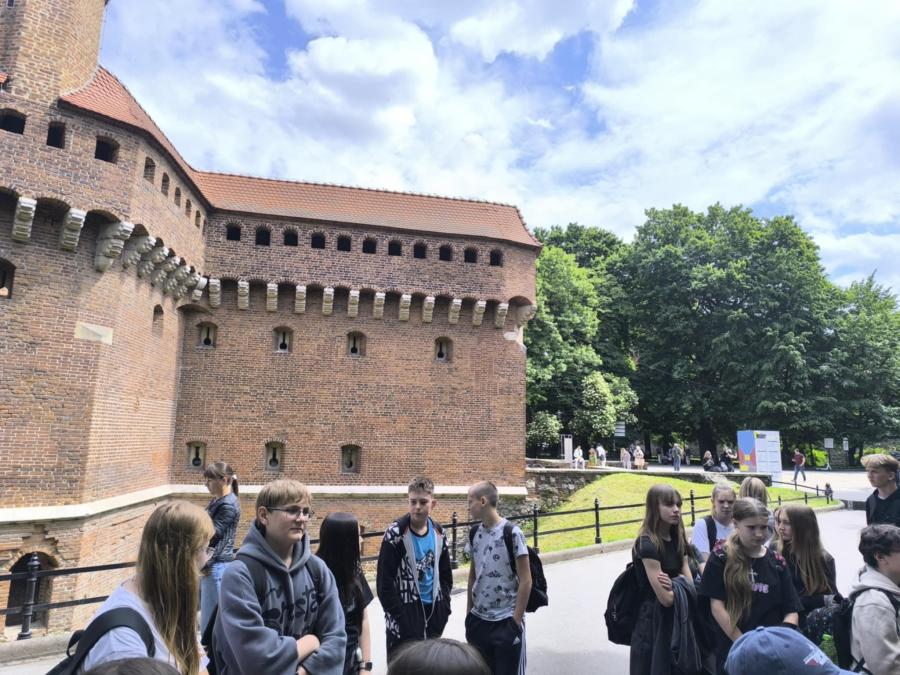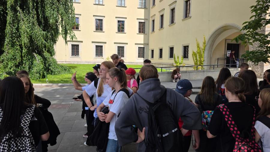 Następnie udali się w centrum Krakowa, gdzie pod opieką przewodnika zwiedzili Stare Miasto. Zapoznali się z historią głównych zabytków: Rynku Głównego z Sukiennicami, kościołów: Mariackiego i św. Wojciecha, wieży ratuszowej i pozostałości murów obronnych, Bramy Floriańskiej, baszty i Barbakanu, pomnika Bitwy pod Grunwaldem, Collegium Maius i Collegium Novum. Kolejnym punktem na mapie zwiedzania było Wzgórze Wawelskie. Przewodnik zapoznał Nas z historią Katedry na Wawelu, Zamkiem Królewskim oraz legendą o smoku. Cieszymy się, że mogliśmy podziwiać obszar Starego Miasta, który został wpisany na Listę Światowego Dziedzictwa Kulturowego UNESCO i jest najczęściej odwiedzanym miejsce w Krakowie przez turystów z całego świata.