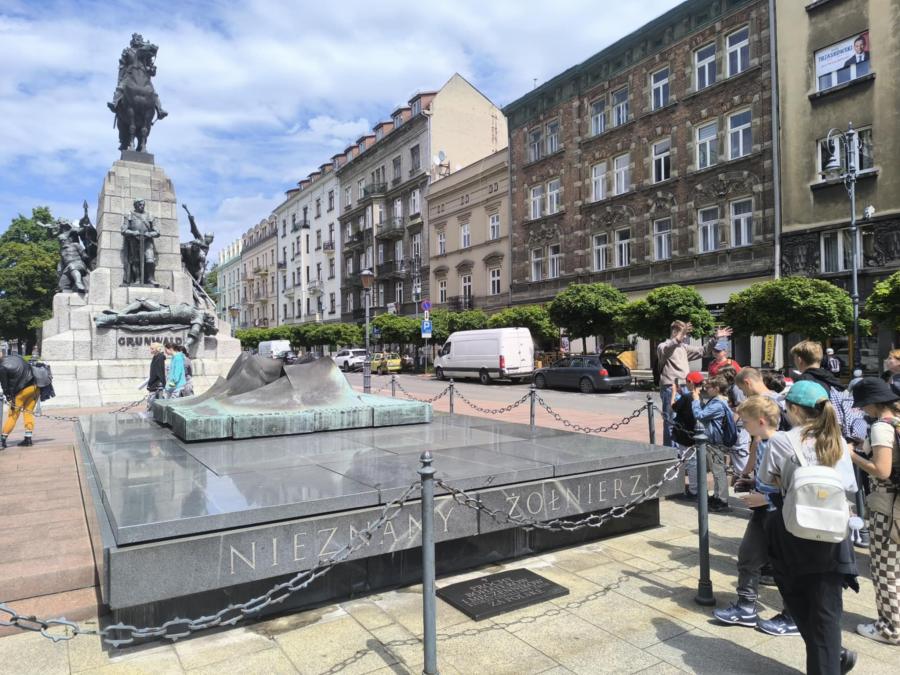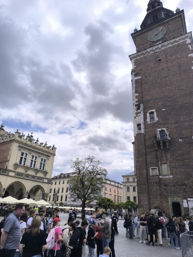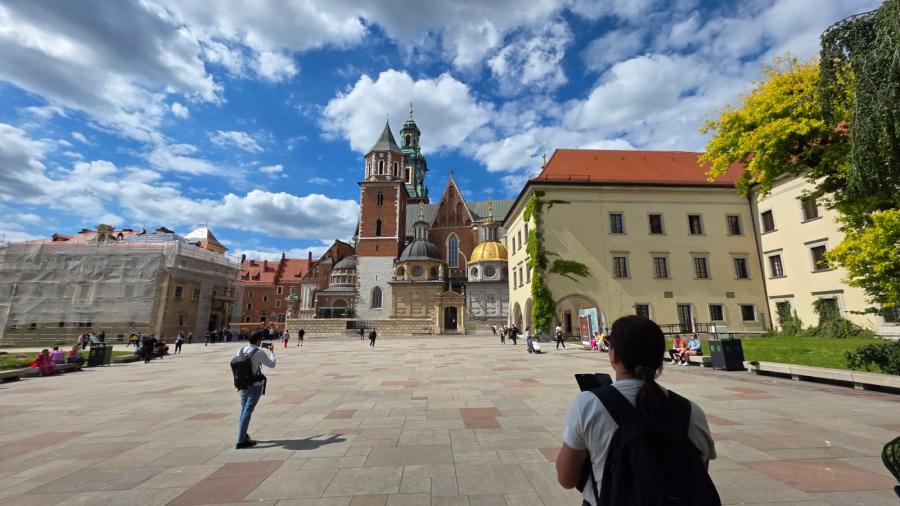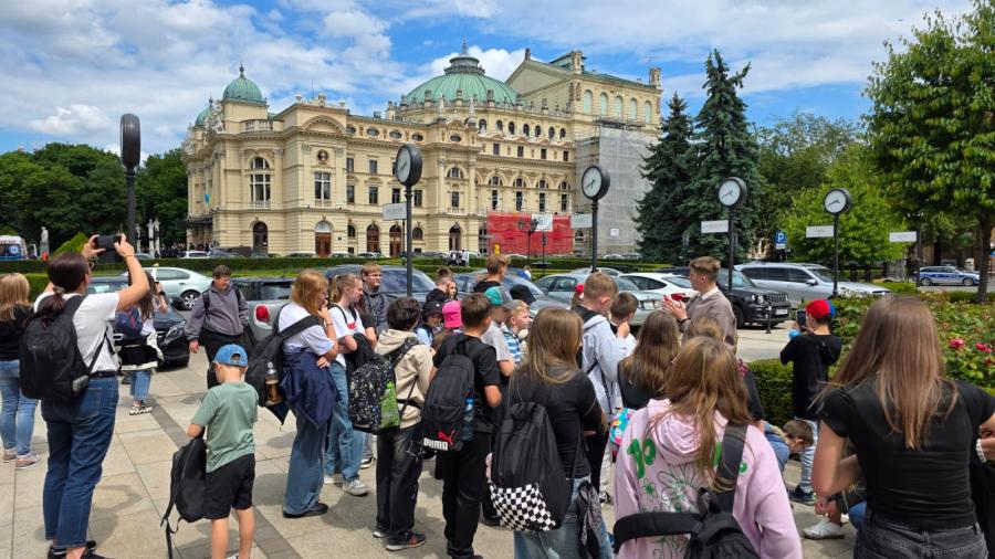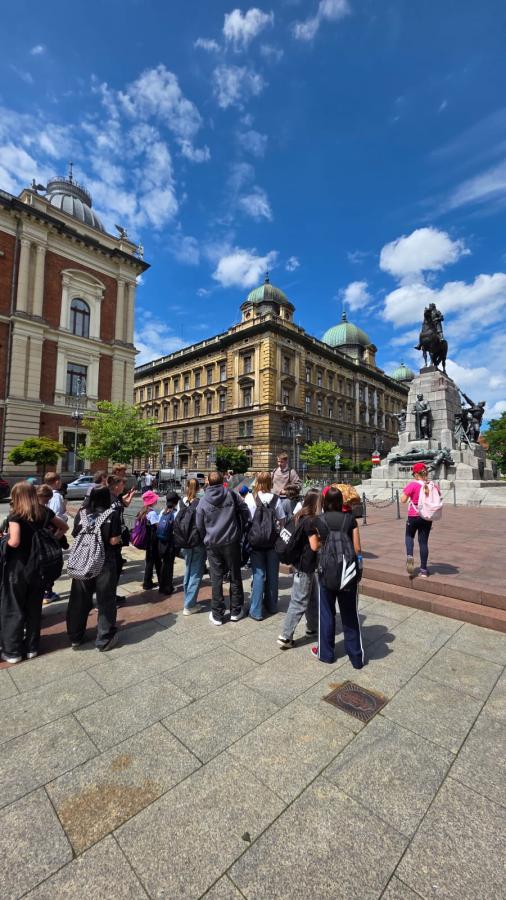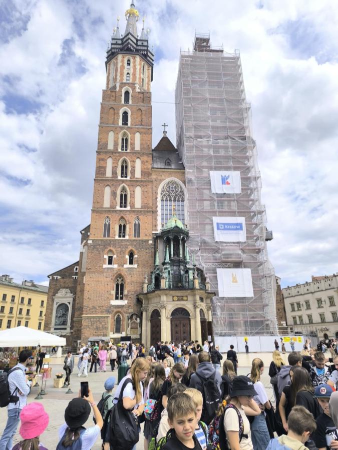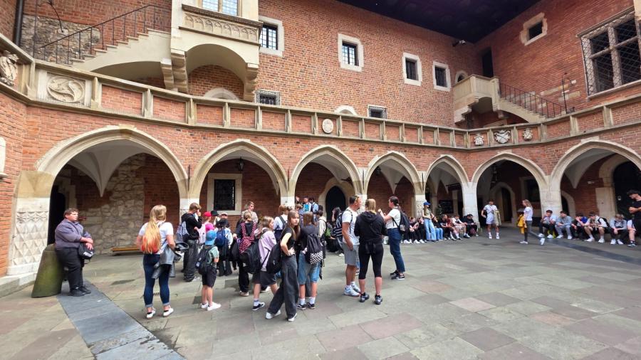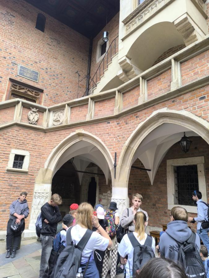 Następnie udali się w centrum Krakowa, gdzie pod opieką przewodnika zwiedzili Stare Miasto. Zapoznali się z historią głównych zabytków: Rynku Głównego z Sukiennicami, kościołów: Mariackiego i św. Wojciecha, wieży ratuszowej i pozostałości murów obronnych, Bramy Floriańskiej, baszty i Barbakanu, pomnika Bitwy pod Grunwaldem, Collegium Maius i Collegium Novum. Kolejnym punktem na mapie zwiedzania było Wzgórze Wawelskie. Przewodnik zapoznał Nas z historią Katedry na Wawelu, Zamkiem Królewskim oraz legendą o smoku. Cieszymy się, że mogliśmy podziwiać obszar Starego Miasta, który został wpisany na Listę Światowego Dziedzictwa Kulturowego UNESCO i jest najczęściej odwiedzanym miejsce w Krakowie przez turystów z całego świata.